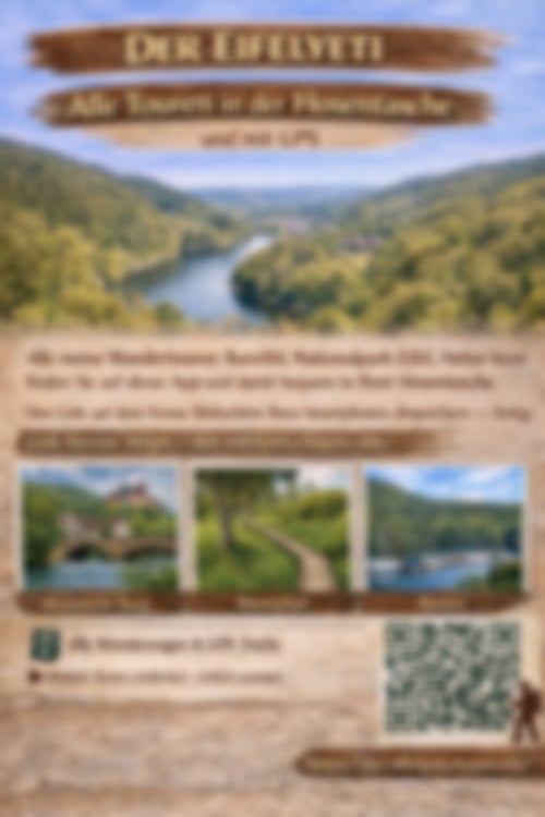 Wiederholte Tourenbegehungen mit dem Ziel der Anpassung vorgenommener Beschreibungen an zwischenzeitlich eingetretene Veränderungen sind nicht vorgesehen, sodass von den Nutzern dieser Seite mögliche Änderungen z.B. bei Wegführung und –Beschaffenheit einkalkuliert werden müssen. Bei den Wandervorschlägen im Nationalpark Eifel sind die Gesetze ,Verordnungen und Richtlinien für den Nationalpark Eifel maßgebend. Bitte wandern Sie diesbezüglich nur auf öffentlichen Wegen des Nationalparks und beachten hier die Beschilderung. Wandern Sie nicht abseits markierter Wege.